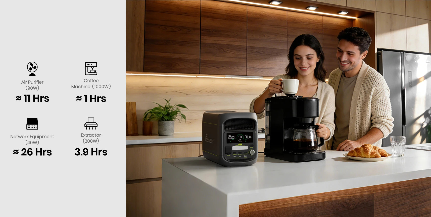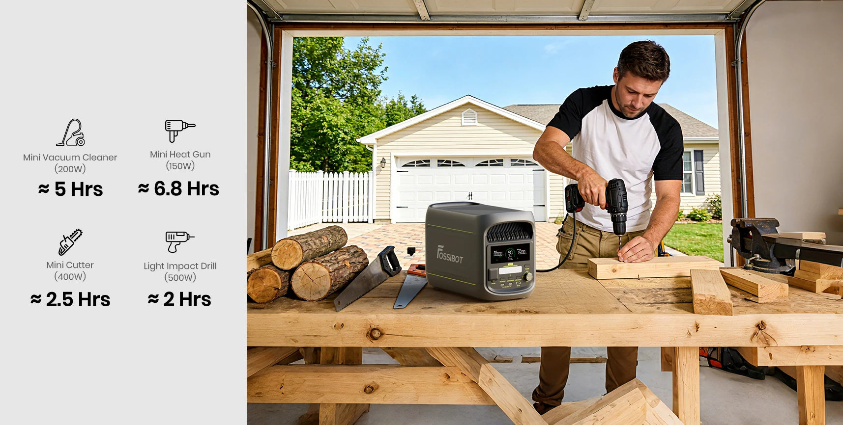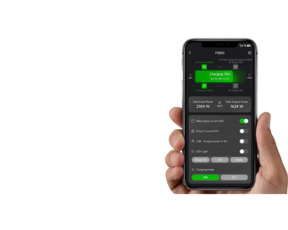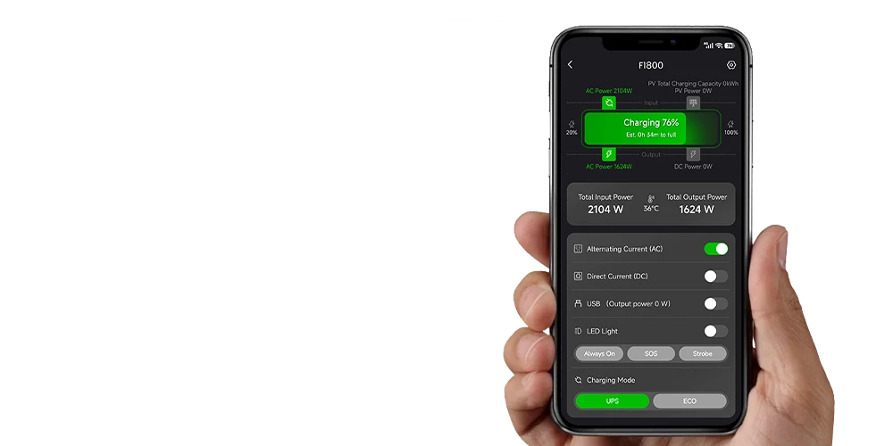 - Mit der FOSSiBOT App können Sie den Batteriestatus in Echtzeit überwachen, Ausgänge steuern und Ihren Energieverbrauch verwalten – für volle Kontrolle über Ihre Powerstation jederzeit und überall.