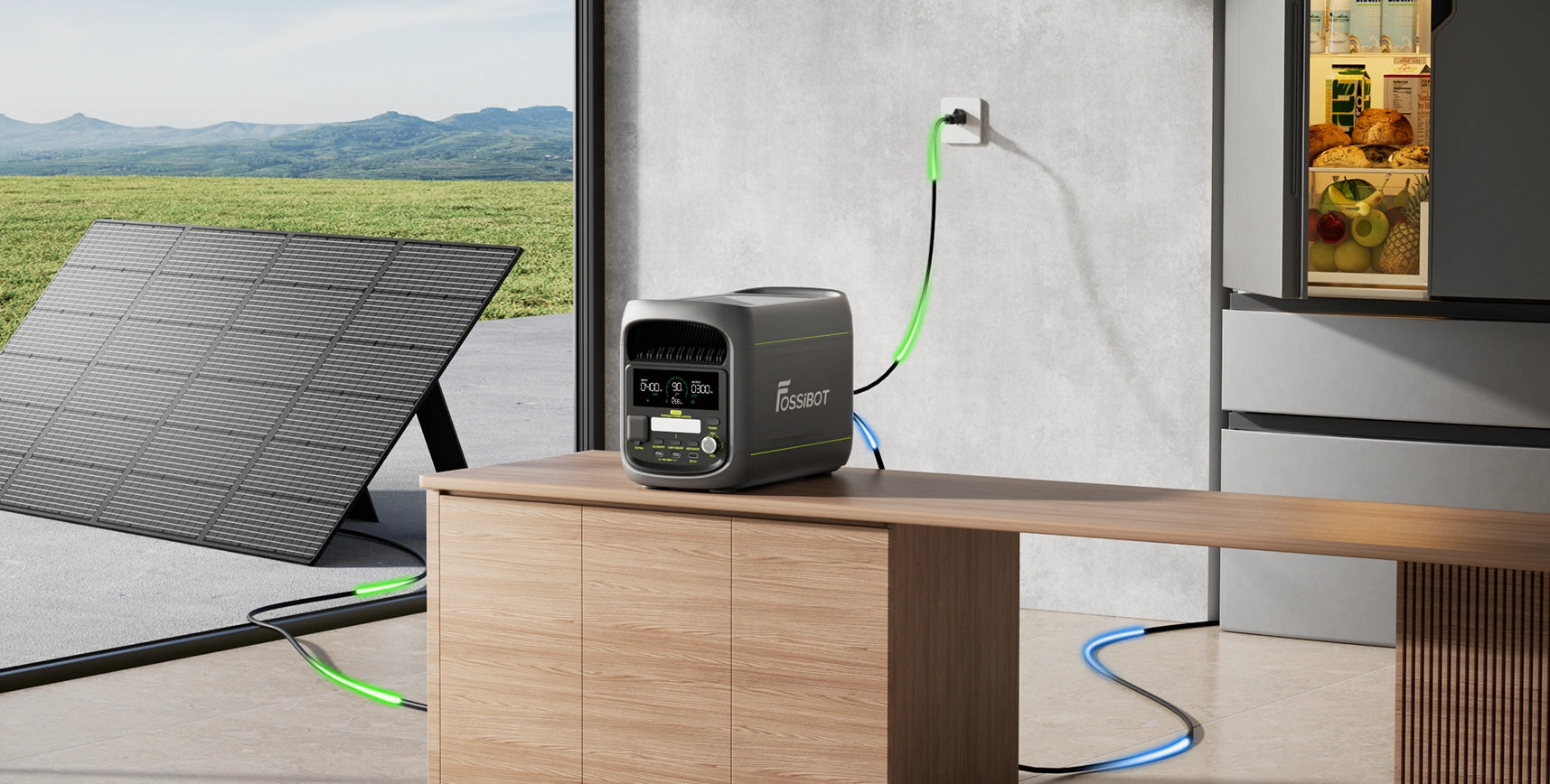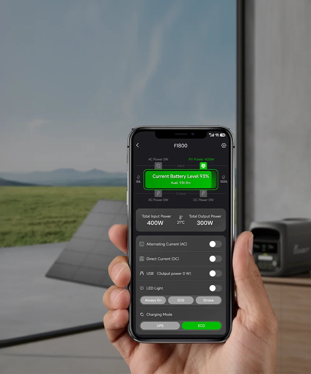 A: In Kombination mit einem 420W-Solarpanel und bei kontinuierlicher Nutzung, beispielsweise zur Versorgung eines Kühlschranks, kann der ECO-Modus etwa 1 kWh Strom pro Tag einsparen. Für optimale Leistung empfehlen wir das Fossibot SP420 Solarpanel.
