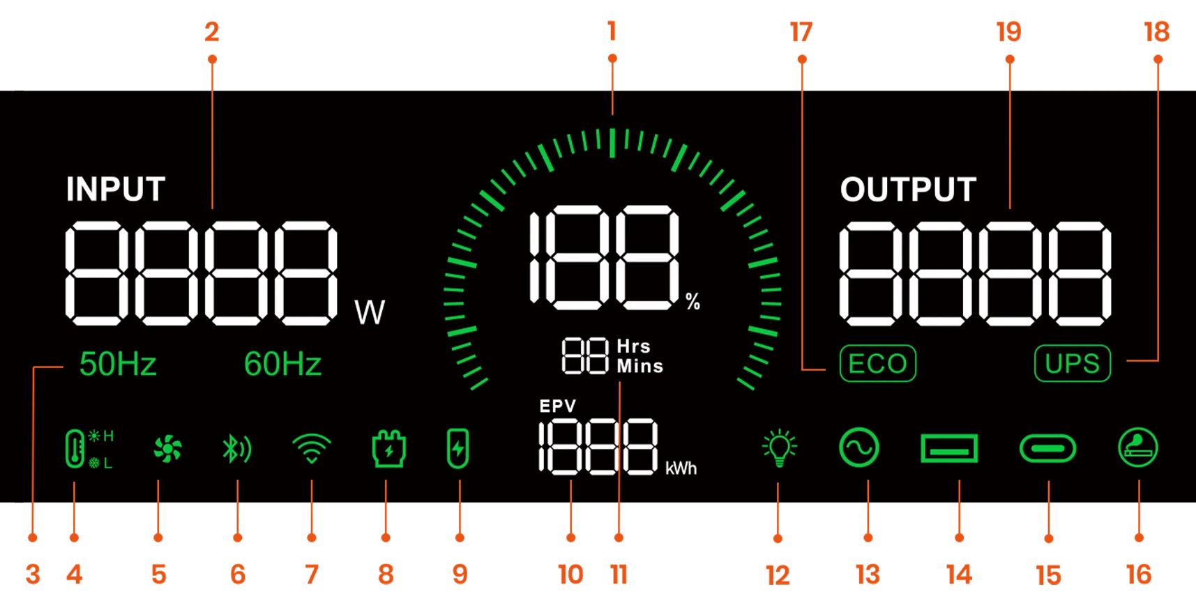 - Der ECO-Modus priorisiert intelligent Batterie- und Solarenergie und verfügt über automatische Bypass-Umschaltung sowie Niedrigbatterieschutz. Dadurch wird eine stabile Stromversorgung gewährleistet, während Energieeffizienz maximiert und die Batterielebensdauer verlängert wird.