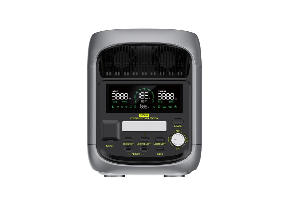 A: Der F1800 ist mit einem Lüfter ausgestattet, um Batterie und interne Komponenten zu kühlen. Die Lautstärke kann unter 35 dB liegen (gemessen bei 600W Lade-/Entladeleistung bei normaler Temperatur und einem Abstand von über 1 Meter), variiert jedoch je nach Eingangs-/Ausgangsleistung und Betriebstemperatur.