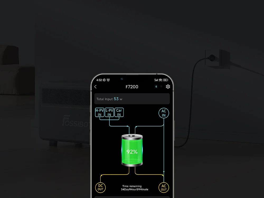 Verwalte dein F7200 nahtlos. Überwache den Batteriestatus, plane kostensparende Ladungen und schalte Ausgänge ein oder aus - alles direkt von deinem Smartphone aus.