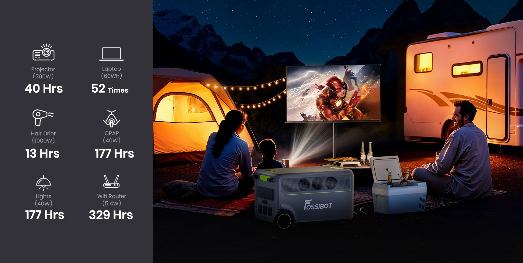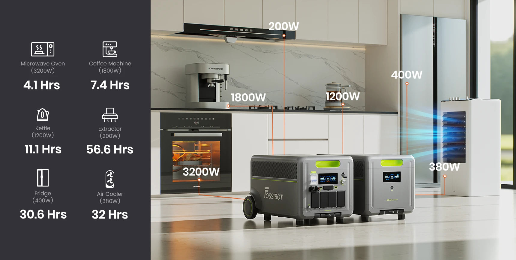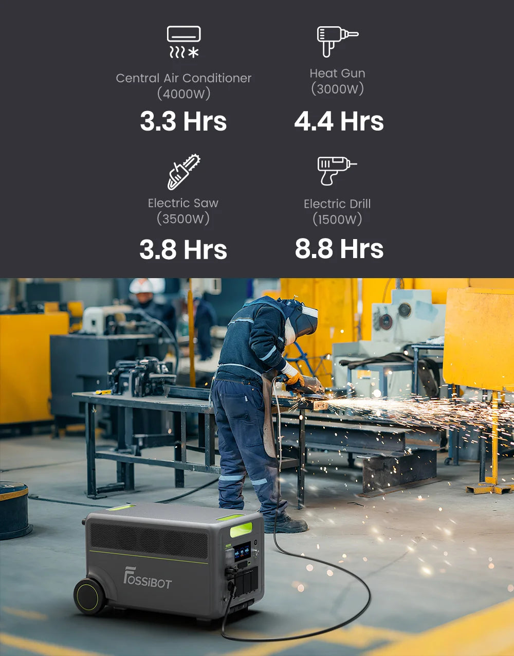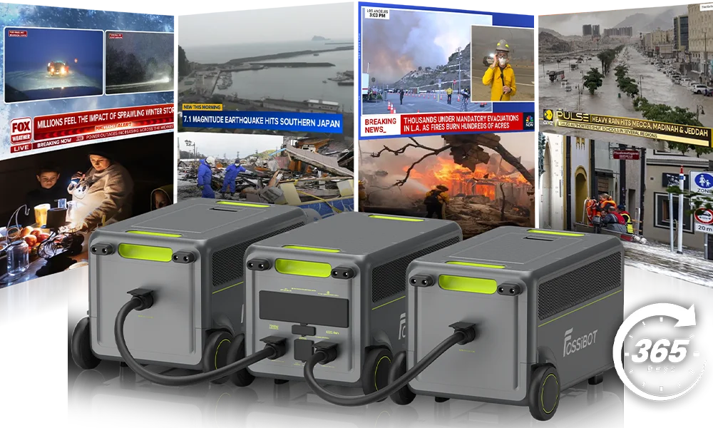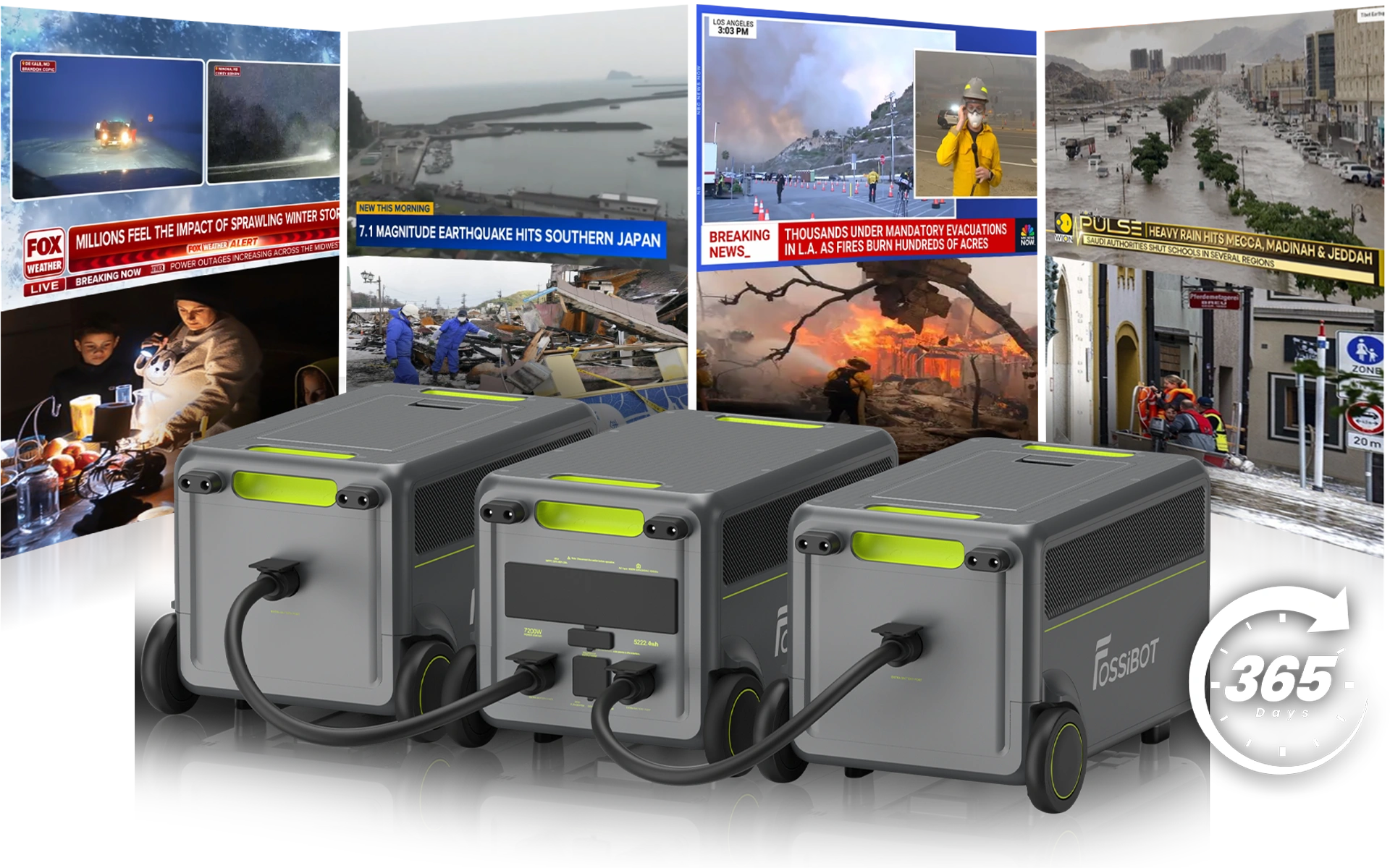 Mit der Hochkapazitätsbatterie, der ultrahohen AC-Ausgangsleistung und der weltweiten Spannungsabdeckung des FOSSiBOT F7200 genießt du auch bei Hurrikanen, Gewittern und Stromausfällen ununterbrochenen Strom.