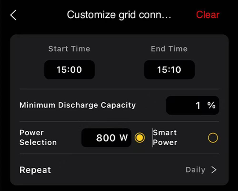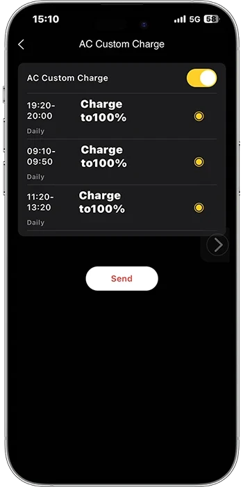Programmiere deine Energie nach deinen Wünschen. Stelle die Micro-Inverter-Ausgangsleistung ein, um Verschwendung im Netz zu verhindern, und plane die AC-Ladung für Nebenschichten - Effizienz und Kosteneinsparungen werden automatisch maximiert.